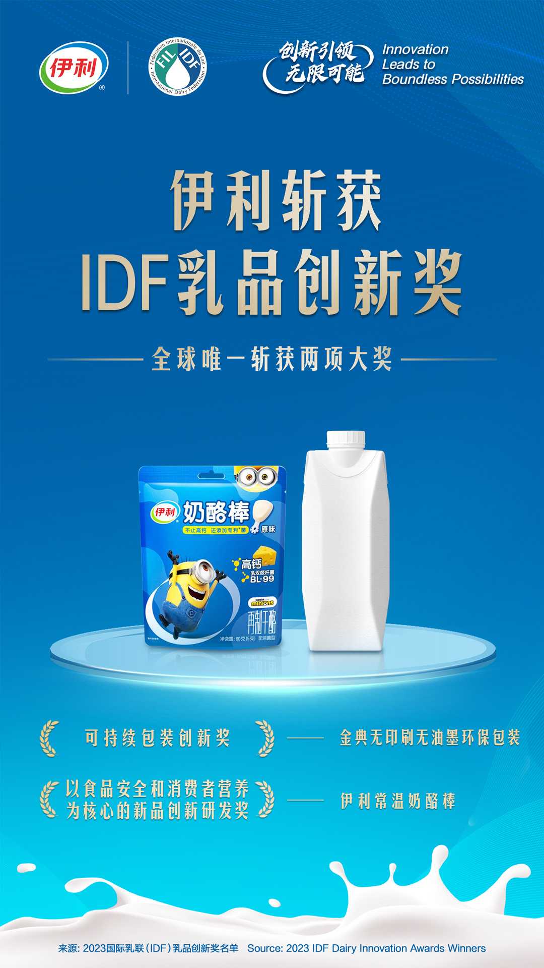 ÌìÏÂÈéÒµ·å»áÓɹú¼ÊÈéÁª¾ÙÐУ¬ÊÇÈ«Çò¹æ¸ñ×î¸ß¡¢¹æÄ£×î´óµÄÈ鯷ÐÐҵʢ»á£¬±»ÊÓΪȫÇòÈéÒµÉú³¤µÄ·çÏò±ê£¬½ÒÏþ¡°IDFÈ鯷Á¢Òì½±¡±ÊÇÌìÏÂÈéÒµ·å»áµÄÖ÷Òª»·½Ú¡£¸Ã½±ÏîÖ¼ÔÚÃãÀøÈ鯷ÐÐÒµÁ¢Òì£¬ÍÆ¶¯ÐÐÒµÂäʵ¿ÉÒ»Á¬Éú³¤Ä¿µÄ£¬ÊÇÈ«ÇòÈéÒµ×î¾ßÓ°ÏìÁ¦ºÍȨÍþÐԵĽ±Ï´ú±íÁËÄê¶ÈÐÐÒµÉú³¤µÄ×î¸ßÉùÓþ¡£
