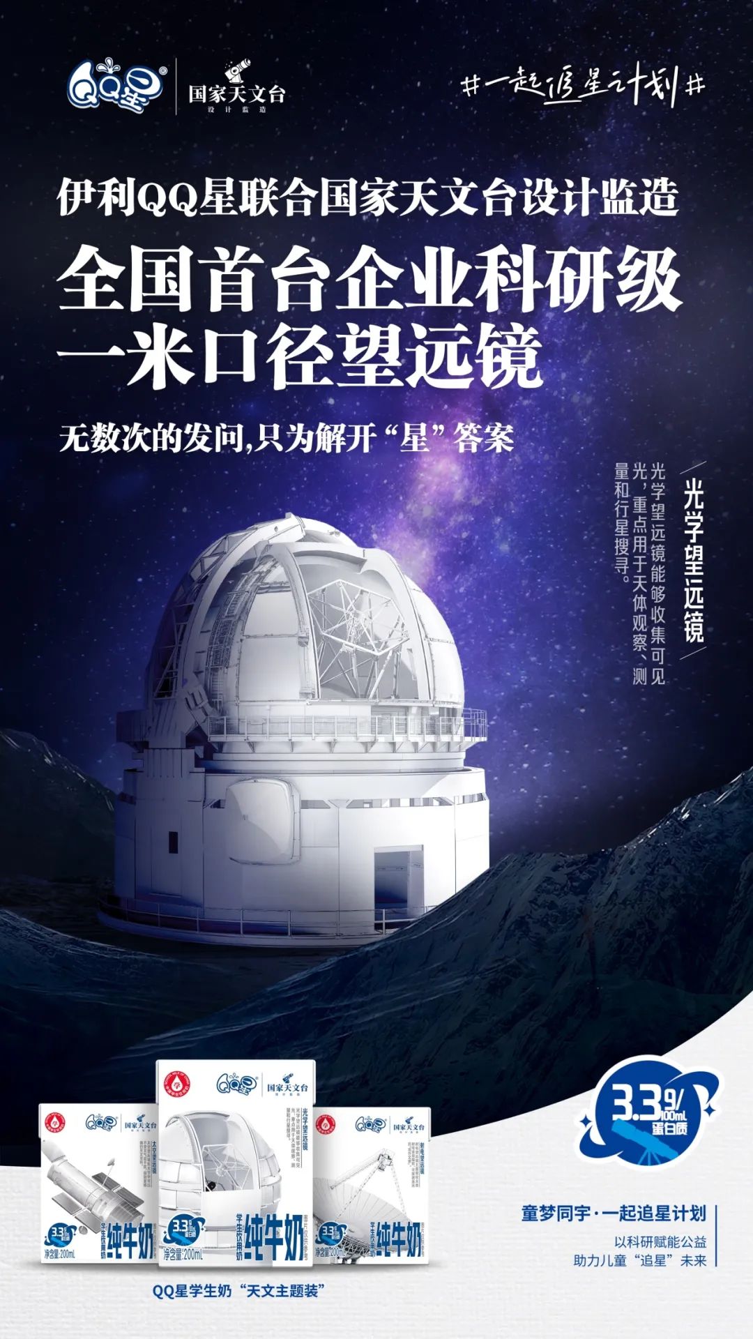 ´Ë´Î¡°Ò»Æð×·ÐÇÍýÏ롱Ͷ½¨µÄ¡°´óÊÓ³¡Ñ²ÌìÍûÔ¶¾µ¡±½«Äܹ»×ÊÖúÈȰ®ÌìÎÄ¿ÆÑ§µÄº¢×ÓÃǸüÇåÎúµØÊÓ²ìÌìÌåºÍ¿ÆÑ§µØÆÊÎöÌìÌåÔËÐмÍÂÉ£¬¸üºÃµØÖª×ãËûÃǶÔÖÚ¶àÓîÖæµÄºÃÆæÐĺÍÇóÖªÓû£¬ÖúÁ¦º¢×ÓÃÇÌìÎÄÃÎÏëµÄʵÏÖ¡£Í¬Ê±£¬ÎªÁ˰ÑÌìÎÄ֪ʶ´ø¸ø¸üÆÕ±éµÄÇàÉÙÄêȺÌ壬Z6×ðÁú¿Ê±QQÐÇÆ·ÅÆÎª¡°Ò»Æð×·ÐÇÍýÏë¡±ÌØÊâÉè¼ÆÁËÌìÎÄ¿ÆÆÕ¿´·¨°æÑ§ÉúÄÌ¡£Í¨¹ýÔÚÆ¿ÉíÉÏÓ¡ÖÆ¾ÓÉ¿ÆÑ§É󶨵ÄÌìÎÄ֪ʶ£¬Èøü¶àÇàÉÙÄêÔÚÒûÓÃÅ£Ä̵Äͬʱ»ñµÃ֪ʶºÍÓªÑøµÄË«±¶Ö§³Ö¡£